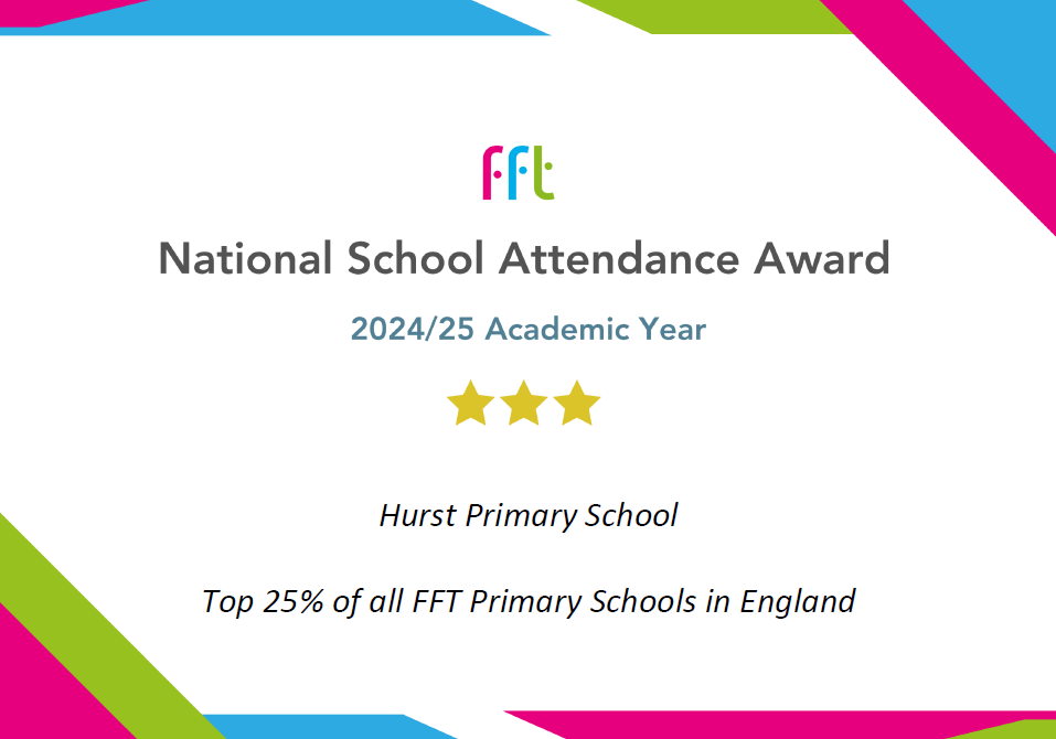 Hurst Primary School is committed to supporting our children to achieve the best possible attendance, to enable every child to achieve their full potential. There is a strong link between good school attendance and achieving a good education. Children who frequently miss school may fall behind in their learning and development. We are proud of our children's good attendance, but also remain determined to improve this further with your support.